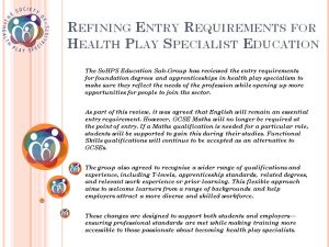 Refining Entry Requirements for Health Play Specialist Education